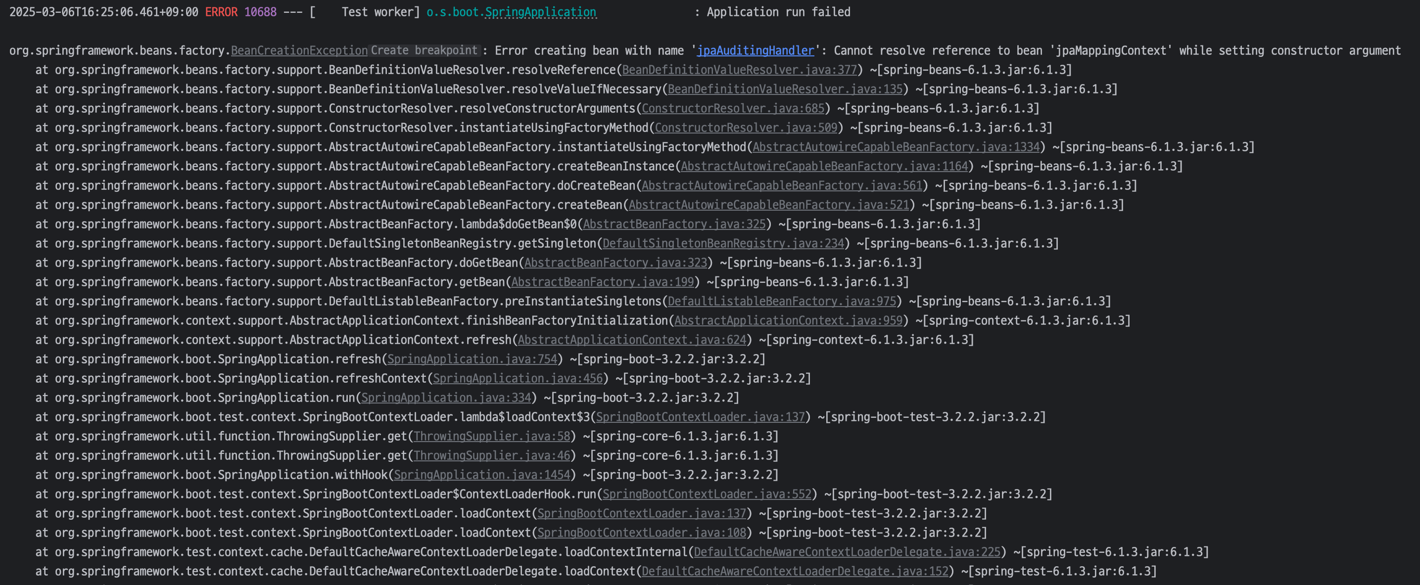 제 메인 애플리케이션 클래스에는 많은 어노테이션이 선언되어 있었고, 그 중 @EnableJpaAuditing이 포함되어 있었습니다. 테스트 실행 시 이 클래스를 베이스로 컴포넌트들을 스캔하면서 JPA 관련 기능을 찾으려고 했지만, @WebMvcTest는 웹 계층만 로드하기 때문에 JPA 관련 빈이 없어 에러가 발생했던 것입니다.