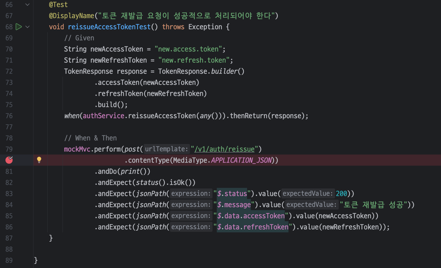 .andExpect(jsonPath("$.message").value("토큰 재발급 성공"))